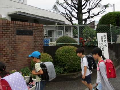 また、本校では、毎日の自分のあいさつ行動を自己評価して記録する『あいさつ推進カード』を2年生以上の子どもたちが、年間を通して取り組んでいます。