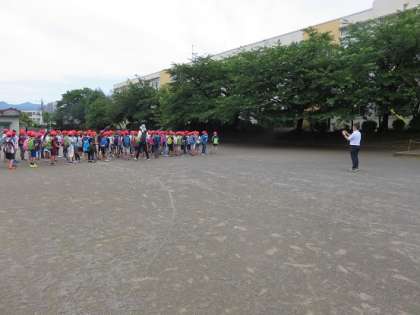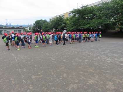 登校班の登校時刻より早めの学校集合となっていました。