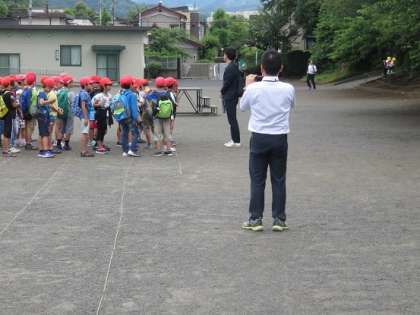 4年生の集合の様子を、副校長先生が写真に収めていました。