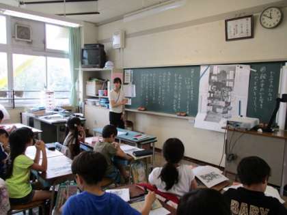 2年生の教室では、国語の授業で『絵の中の漢字を使って文を作ろう』の学習をしていました。漢字それぞれのもつ意味を思い浮かべて、自分の生活や経験と結びつけながら、文を考えます。言葉をもとに、言語的なイメージを膨らませていく学習です。
