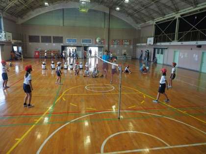 体育の授業では、ソストバレーボールの柔らかなボールや、バトミントンの低いネットを使った、4年生の子どもたちは、ゲームを楽しんでいました。