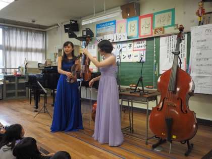 チェロコンサートでは、チェロの音色だけではなく、いろいろな楽器の紹介もしていただきました。