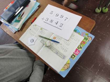 子どもたちが、操作がより具体的に行い、分かりやすいように計算ボードと数字カードなどの教材を工夫していました。