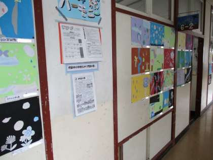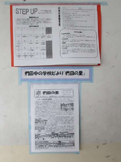 6年生の教室の前の廊下の壁には、小中一貫教育の取り組みの一つとして、中学校の学校だよりが掲示されています。6年生は、おたよりを見ながら、中学校の学校生活のイメージをより確かなものにしていました。