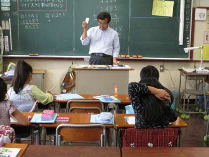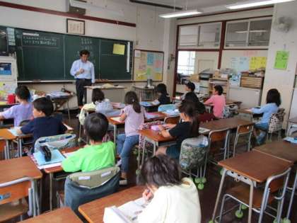 この日の学習課題を子どもたちと確かめ合いました。本校では、習熟度のどのコースでも、子どもたちがノートが取りやすいように、板書の仕方を共通化して授業を進めています。
