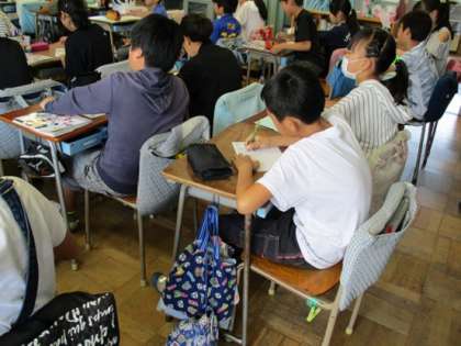 学習の始めに、子どもたちは、今までの自分の経験などをもとに、思いやりのある人とはどのような人かを、一人ひとり考えました。