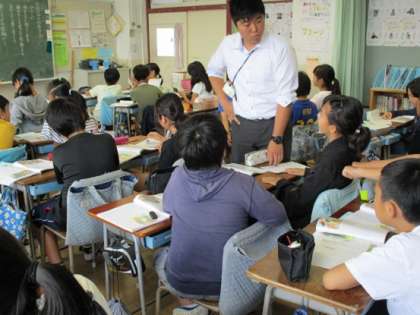 子どもたちは、自分の考えた考えを、まわりの友だちと意見交流をしてもらい、考えを深めようとしていました。