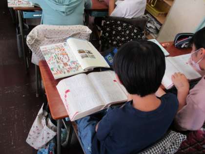 子どもたちは、短い時間の中で、取り扱われている漢字や熟語を意欲的に調べていました。