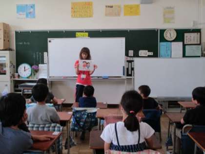 子どもたちが身近に感じて分かりやすいものをとの視点から、ちびまる子ちゃんのお話を題材にしていました。