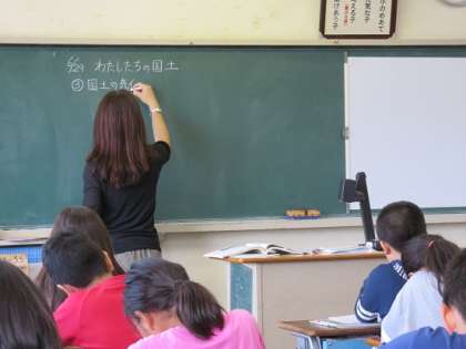 南北に細長い日本の地形と気候の関連を、子どもたちは学習していました。