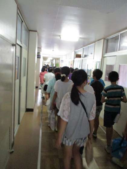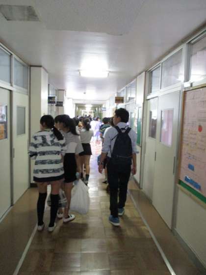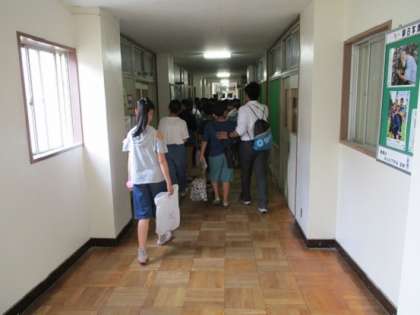 6年生の子どもたちは、部活動をしている教室を見に行く途中に、中学校の生活の様子を、廊下から読み取っていました。