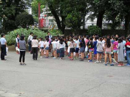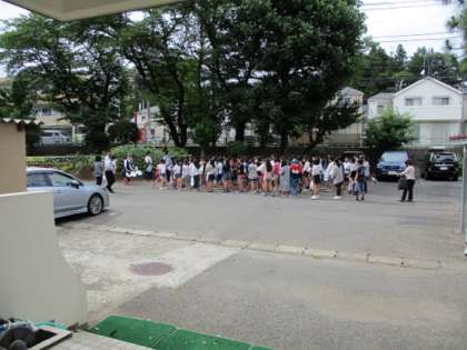 校庭や教室などで行われている部活動の見学の案内をしていただいた中学生に、6年生全員でお礼の気持ちをお伝えして、学校に戻りました。