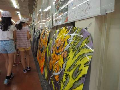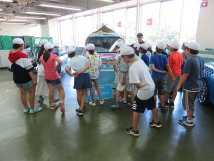 大学校の学生のみなさんは、ボディペイントの技術を活かして、すてきな絵を描いたり、ボディクラフトの技術を使って、自動車全体にたくさんの飾りを付けたりした自動車を見せてもらいました。