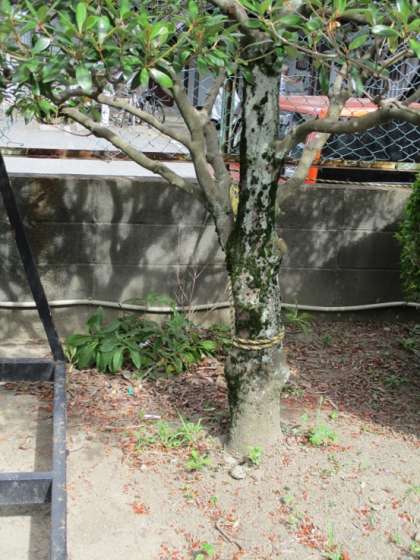 その間に地震に見舞われてしまったときにも、もし万が一倒壊した場合に、歩道や隣接地側に倒れるのではなく、本校の校地の植え込み側に倒れるように、応急対応をしました。
