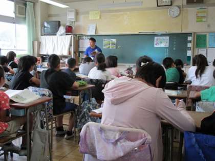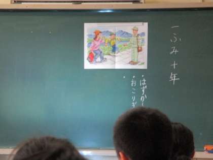 『一ふみ、十年』の道徳資料を通して、子どもたちは自然保護の大切さや、そのことを守り続けることの大変さなどを学んでいました。