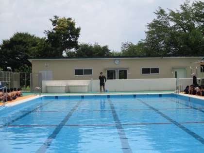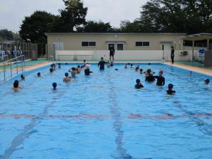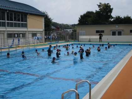 プールサイドでの人数確認を素早く済ませ、子どもたちは、プールの中で、元気に泳法の習熟を図っていました。