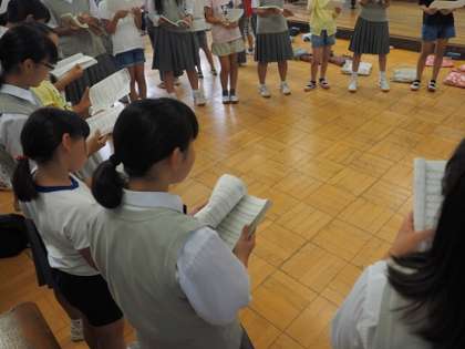 音楽を館中の方々とやりました。「夢の世界を」という歌を歌って、アルトパートは、とても難しかったです。でも、楽しくできたのでよかったです。中学校が楽しみになりました。