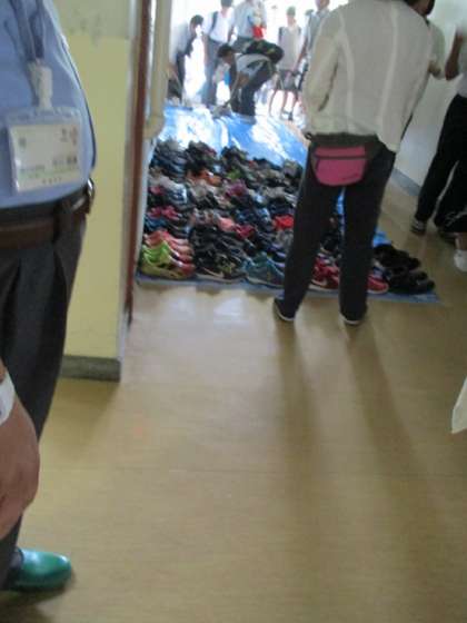 日頃は使っていない“北昇降口”から館中学校の生徒の皆さんに出入りしていただきました。