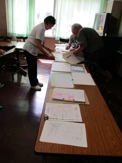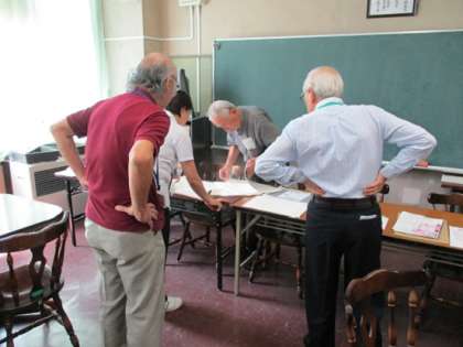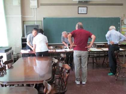 検定が終わって、子どもたちが頑張って取り組んだ答案用紙は、最後に、学運教の委員の方々のよって、受験番号や記名の漏れや間違いがないか確認をされていました。