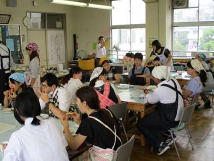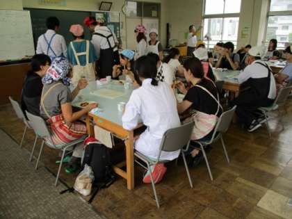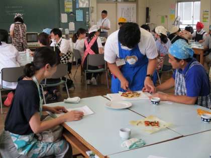 いろいろな野菜のすり下ろしを混ぜ込んだピザ生地は、どんな味なのか、先生方が試食をしました。