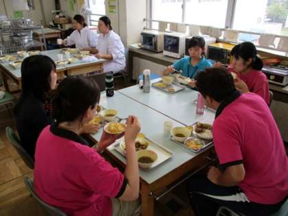 学校運営委員会の委員の方々、保健給食課の方々、そして、トウショクさんのスタッフ皆さんが、試食をされていました。