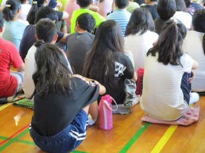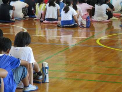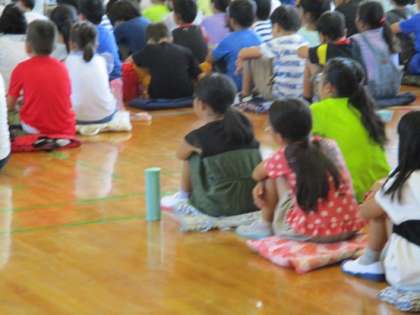 すぐに水分補給ができるように、子どもたちは、体育館まで持って来て、用意をしてありました。