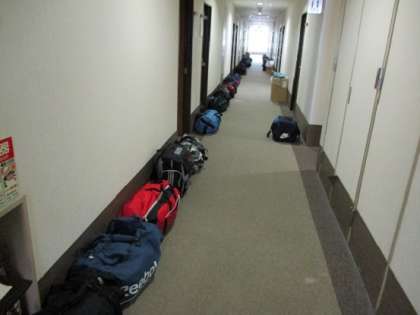2日間お世話になった日光アウトリアホテルの自分たちの部屋もキレイに整えます。忘れ物がないようにすることもかねて、大きなバックもリョックも廊下に並べて置き、寝具も上手に畳みました。