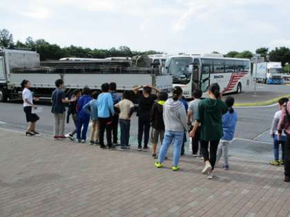 高坂サービスエリアでのトイレ休憩を済ませた子どもたちに載せたバスは、学校に向かって走っていきました。