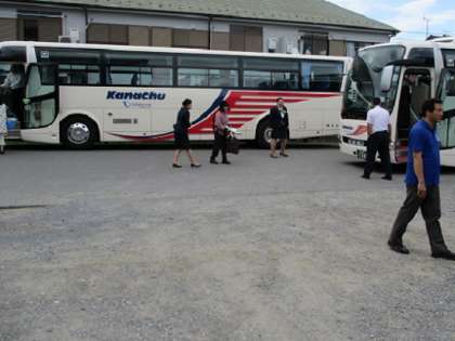 子どもたちを乗せたバスは、運転手さんのお陰で、とても気持ち良いバスの旅が無事できました。そして、学校では、授業を終えたくさんの先生方が迎えてくれました。