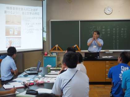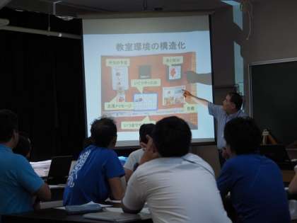 パワーポイントで映し出された画面から、『教室の構造化』などさまざまな、具体的な学習支援の仕方を、先生方は学んでいました。