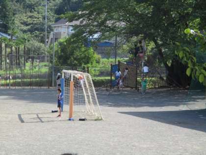 放課後の子どもたちは、時間があると、放課後子ども教室に参加しています。図書室で過ごす子とともに、校庭では、固定遊具やボール遊びを楽しんでいます。