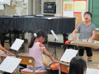 お箏の演奏を間近で見ることができたり、分からないことを質問したりできたので、音楽クラブの子どもたちは、お箏に触れながら、初めて演奏をすることにも慣れてきている様子でした。