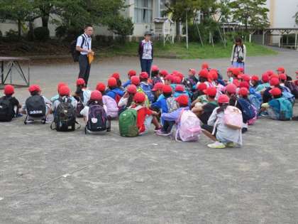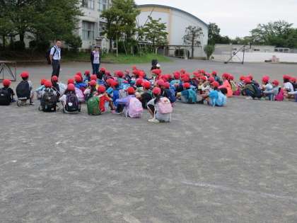 リュックを背負った子どもたちは、校庭に集合して、担任の先生方から、気をつけることなどのお話を聞いていました。