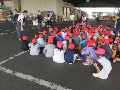 保管庫やバナナ熟成室、そして、場内を見学した子どもたちは、最後に、質問タイムを設けてもらいました。見学していて疑問に思ったことを、ていねいに教えていただきました。