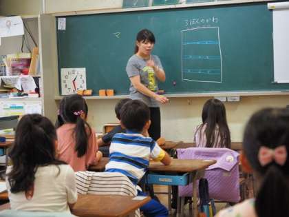 朝の会の最後は、『先生からのお話』です。一年生が分かりやすいように、黒板に図を描きながらお話をしていました。