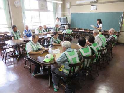 今日の給食の時間に、日頃、通学路で子どもたちの安全見守りをしていただいている地域の皆様をお越しいただきました。そして、給食を子どもたちと一緒に食べていただきました。