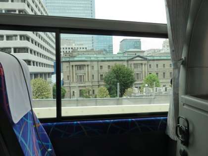 子どもたちを乗せたバスは、次の見学地へ進んでいきました。車窓からは日本銀行の建物や昔からの経済の中心地を表すような建物をたくさん見ることができていました。