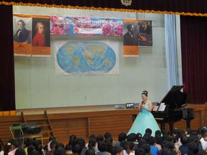 この日の音楽鑑賞教室では、世界のクラシック音楽と日本のうたと全部で16曲の音楽が演奏されました。子どもたちは、プログラムを見ながら、音楽の勉強を進めていました。