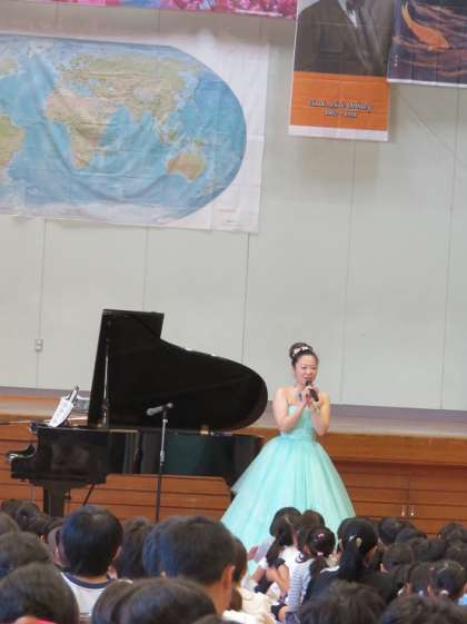 平井李枝先生は、ピアニストやソプラノ歌手のお仕事以外に、宇都宮大学で学生さんに音楽の授業もされています。子どもたちに分かりやすいお話と同時に、音楽的な内容もしっかり踏まえて教えていただけていました。