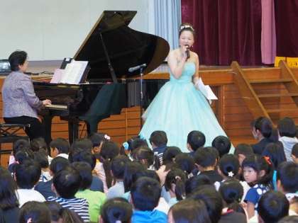 <日本のうた>では、本校の校歌の作曲者でもある平井康三郎先生の曲を5曲鑑賞しました。『みんないいこ』『だれかさんとおんなじね』『そうだん』『カンガルーの坊や』『九官鳥』でした。