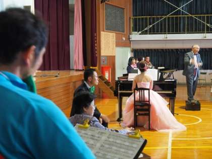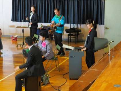 昨年の120周年の記念式典の時と同じように、先生方がいろいろな楽器を演奏しました。