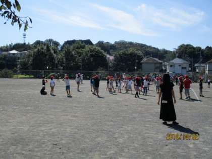 中休みの時間を使って、本校では、『なかよし遊び』が行われています。1年生は6年生と、2年生は5年生と、3年生は4年生とクラスでペアーを作って異学年交流をします。なかよし遊びでは、校庭や教室で、上の学年の人が考えた遊びをみんなで遣ります。
