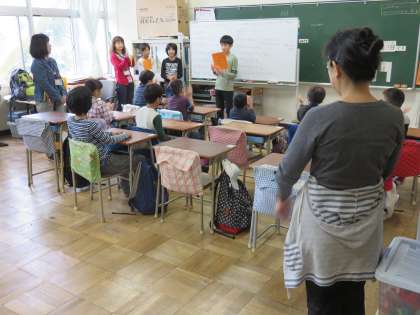 宿泊学習では、最初に、出発式をすみれ学級教室で行いました。6年生がリーダーとなって、式の進行・あいさつなどを担当しました。とても上手にできていて、準備をしっかりしていたことが分かりました。
