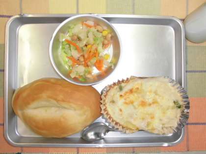 本日は、ビーンズサラダを作りました。ゆでた大豆と、蒸かしたキャベツ、にんじんが入っています。とても彩の良いサラダです。