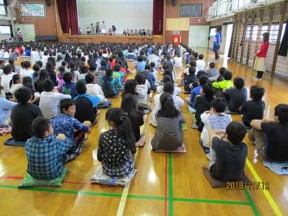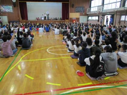 図書委員会の子どもたちは、発表する内容を、聞いている人が楽しく、そして、伝えることが伝えわりやすいように、クイズ形式の発表を工夫していました。