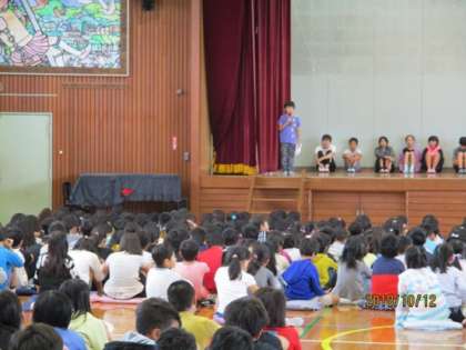 クイズ形式での発表を終えると、近々計画されている『読書週間』の取り組みについて、全校の子どもたちに伝えていました。