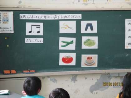 子どもたちが好きな “やおやの歌”を使って、『スキップちゃん』のリズムに合わせて、やさいの名前を歌ったり、手拍子をしたりしていました。