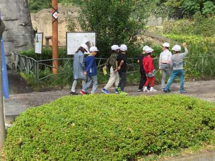 去年の遠足の経験を活かして、2年生が1年生をリードしながら、いろいろな動物の見学をしていました。