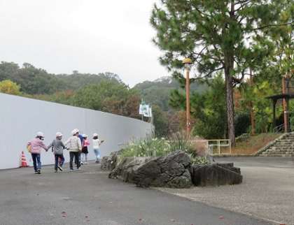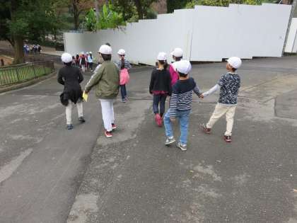 1年生が迷子にならないように、2年生はしっかりと1年生と手をつないで、グループ行動ができていました。