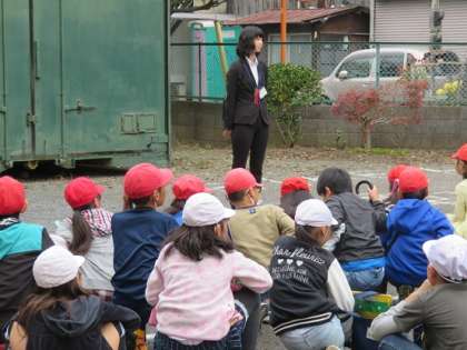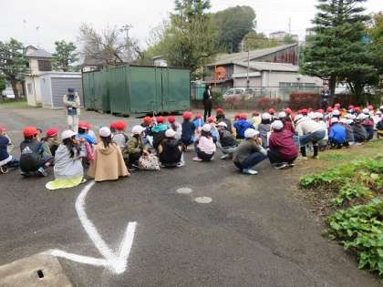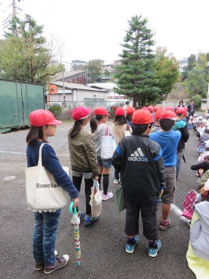 3年生の子どもたちは、社会科の学習として、学校の近くにあるスーパーマーケットの見学に出かけました。スーパーマーケット見学などで気を付けることを、出発する時に、担任の先生と確かめました。